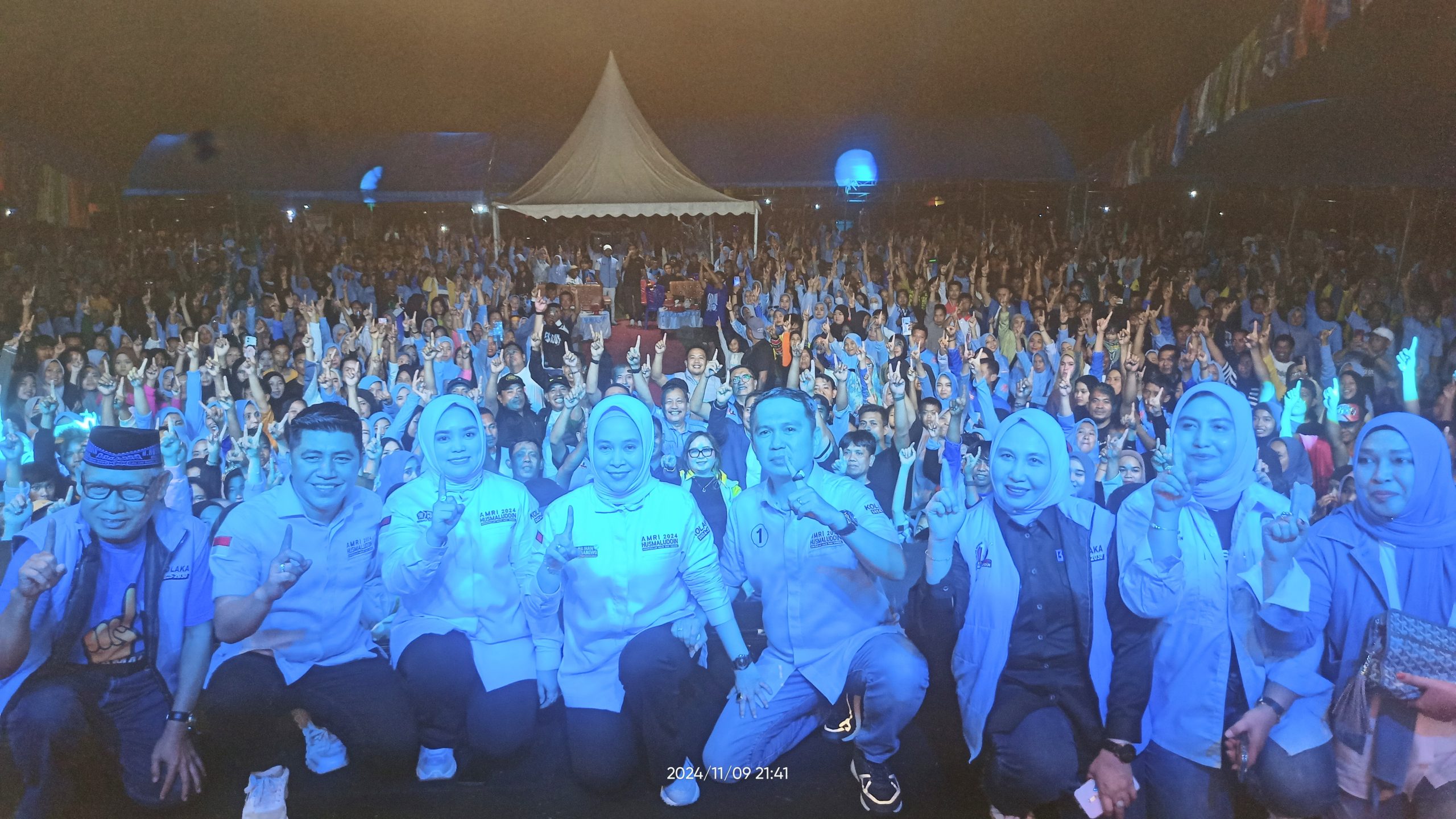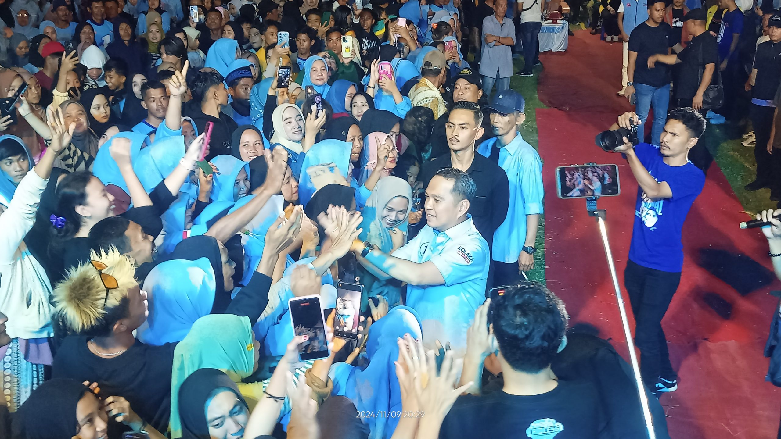Calon Bupati dan Wakilnya tagline BERAMAL tiba di Lapangan pada pukul 20.10 WITA langsung menyalami masyarakat, di dampingi Ketua tim pemenangan, serta 13 Ketua dan Pengurus Partai Politik pengusung, diantaranya, H. Amir sahaka, H. Ismail Bela, dan para anggota DPRD Kolaka, Parmin Dasir Ketua PAN, Akring Johar PKB, Ir Akhdan PPP, Sainal Majid PBB, Sulkifli Partai PSI, Faisal Manomang PKB, serta terpantau hadir para tokoh adat dan tokoh masyarakat Suku Bugis, Makassar, Jawa, Moronene, Bali, Toraja, dan suku Tolaki.